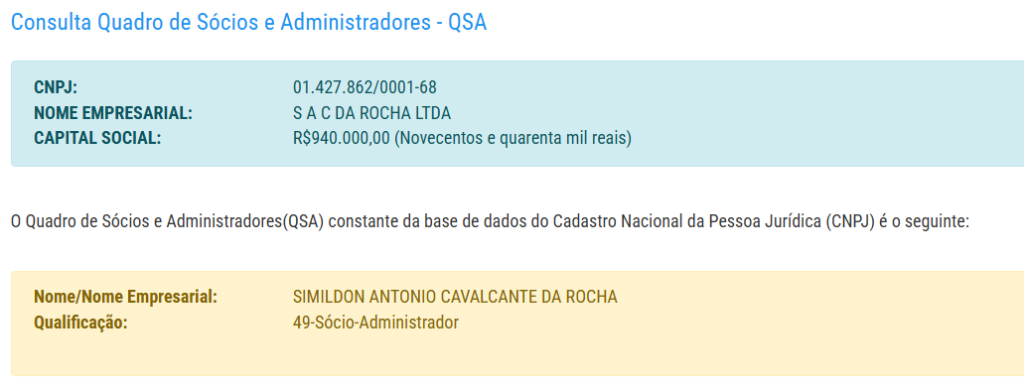 Nos dois CNPJs, o vereador é o único proprietário, apresentando capital social de R$ 940 mil em uma empresa e a outra com capital social de R$ 400 mil, somando mais de R$ 1,3 milhão, somente com as duas empresas.