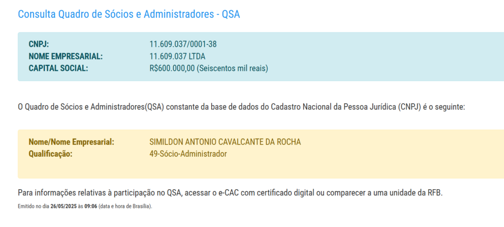 A outra tem porte de micro empresa (ME) e foi aberta em janeiro de 2017, estando há 8 anos ativa no mercado.