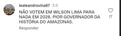 “Não votem em Wilson Lima para nada em 2026, pior governador da história do Amazonas”, escreveu um usuário revoltado no Instagram.