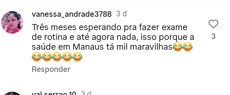 “Tô há três meses esperando pra fazer um exame de rotina e até agora nada. Isso porque a saúde em Manaus tá mil maravilhas, né?”, criticou uma seguidora.