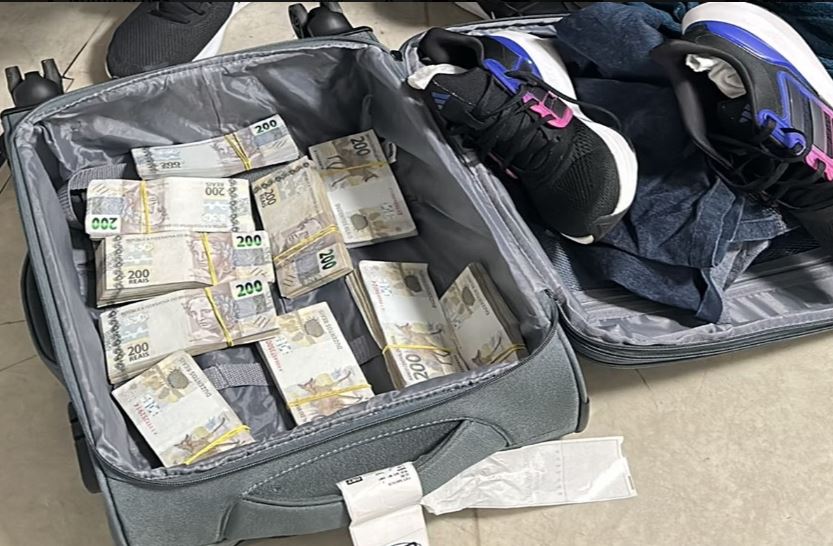 Mala com dinheiro que Cesar estava transportando. Foto: Divulgação/ PF