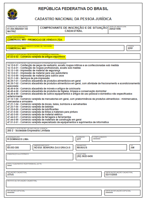 A empresa com a razão social Comercial Mix – Promocao de Vendas Ltda, tem o nome fantasia Comercial Mix, opera com o CNPJ 01.064.966/0001-55 e foi fundada em 28/02/1996. O endereço de sua sede está localizada na Rua Domingos Lima, 277 – Nossa Senhora das Graças, Manaus. Sua atividade principal é de Comércio varejista de artigos esportivos.