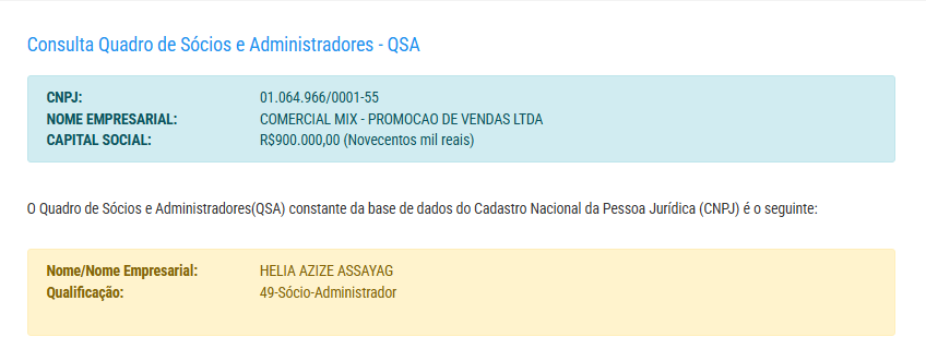 A empresa possui capital social de R$ 900 mil e pertence a Helia Azize Assayag.