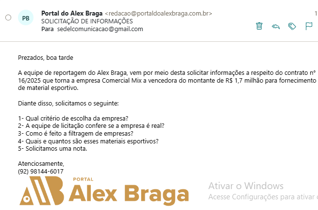 Em uma vaga resposta a Sedel afirmou que a empresa Comercial Mix é a única que fornece material esportivo no Amazonas. Além de ter sido uma adesão a ata.