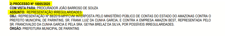 Ainda, a apuração não envolve apenas o Ministério Público de Contas. O Ministério Público do Estado (MP-AM), a Prefeitura de Parintins e a Secretaria de Estado de Cultura e Economia Criativa (SEC) também figuram no processo como interessados. O objetivo é examinar a legalidade de atos administrativos praticados pela administração municipal, especialmente no que diz respeito à contratação da empresa Amazon Best para serviços e eventos realizados em Parintins.