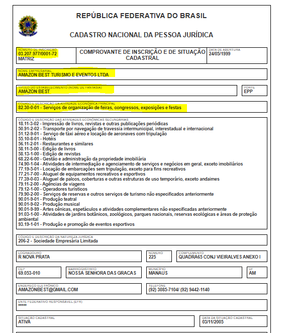A empresa, que possui capital social de R$ 2 milhões, e é a única responsável pela venda de ingressos do tradicional Festival Folclórico de Parintins.