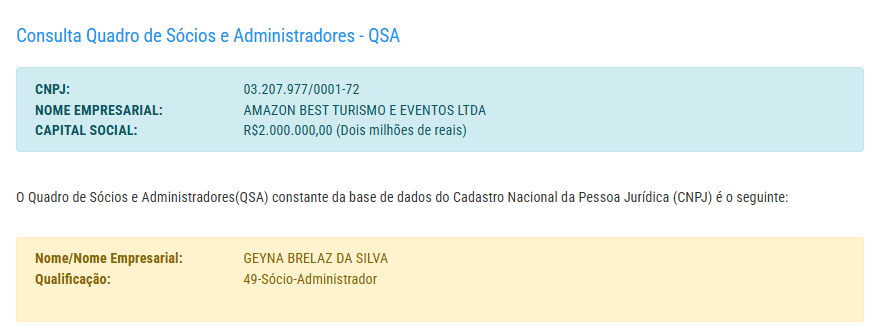 A empresa Amazon Best, inscrita no CNPJ 03.207.977/0001-72, é de propriedade de familiares de Bi Garcia e tem como principal sócia a empresária, Geyna Brelaz da Silva, que é cunhada do ex-prefeito.