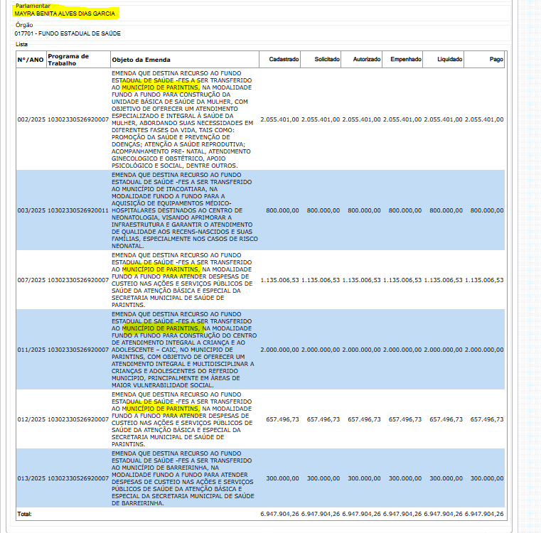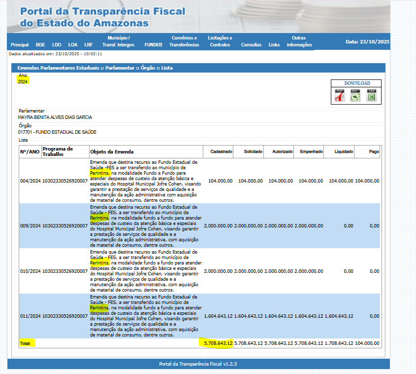 O famoso Festival de Parintins, recebeu cerca de R$ 85 milhões entre 2021-2024, em emendas parlamentares — um aumento expressivo de quase 250% em relação ao período anterior. Parte desse montante teve origem em parlamentares ligados ao ex-prefeito Bi Garcia e à sua esposa, deputada estadual, Mayra Dias (Avante), que também figurou entre os principais autores de emendas destinadas ao município do boi.