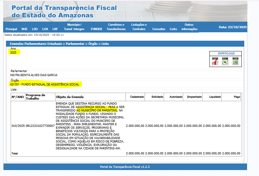 Os repasses podem ser vistos no Portal da Transparência do Amazonas.