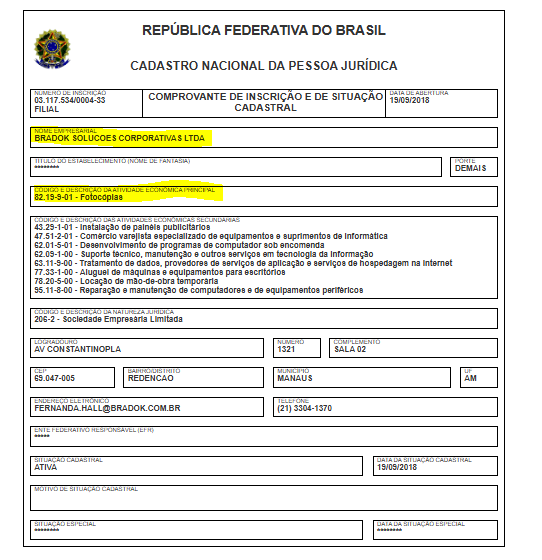 A empresa com a razão social Bradok Solucoes Corporativas Ltda, opera com o CNPJ 03.117.534/0004-33 e foi fundada em 2018. O endereço de sua sede está localizada na Avenida Constantinopla, 1321 – Redenção, Manaus. Sua atividade principal é de Fotocópias.