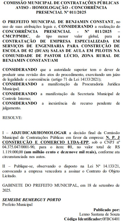 A segunda empresa N P J Construção e Comércio, já recebeu dos cofres de Benjamin Constant, mais de R$ 8 milhões, na gestão do ex-prefeito David Bemerguy, para serviços de “locação de mão de obra”. E ainda outro contrato de mais de R$ 2 milhões para a construção de um auditório e um muro do Centro Social Batista Independ (Cesbi), na sede da cidade.