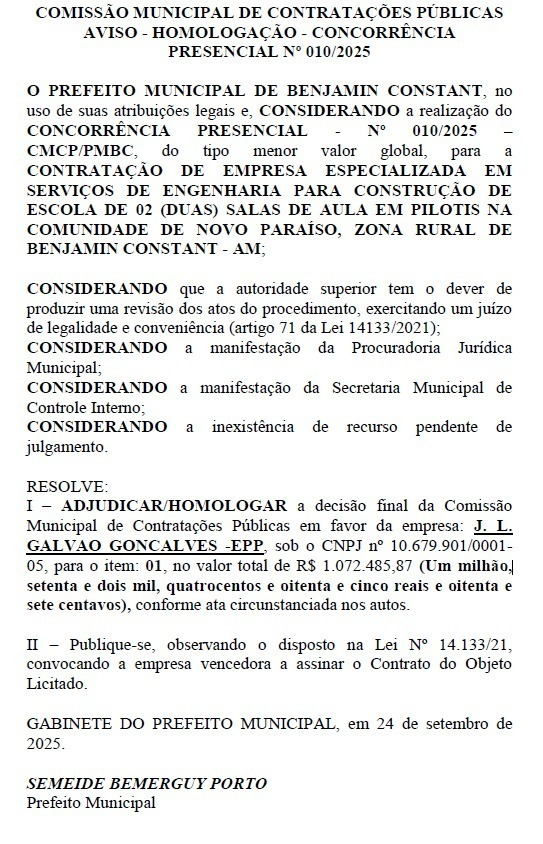 O prefeito de Benjamin Constant, Semeide Bemerguy (MDB), pretende construir três escolas de pilotis nas zonas rurais do município. As escolas que contam com apenas duas salas, cada uma, custarão mais de R$ 3,2 milhões aos cofres públicos da Prefeitura.