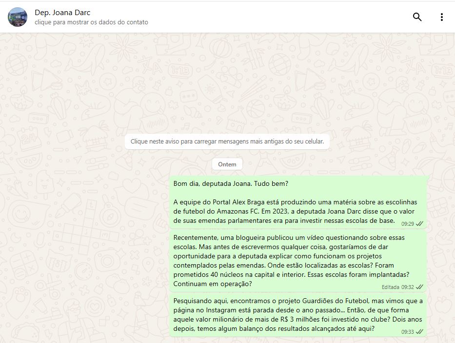 A reportagem também procurou a deputada Joana Darc para questionar onde estão localizadas as escolinhas, se elas foram efetivamente implantadas, se continuam em funcionamento e se houve fiscalização da parlamentar e prestação de contas sobre o recurso destinado. Até o fechamento desta matéria, Joana Darc não respondeu.