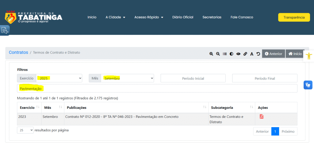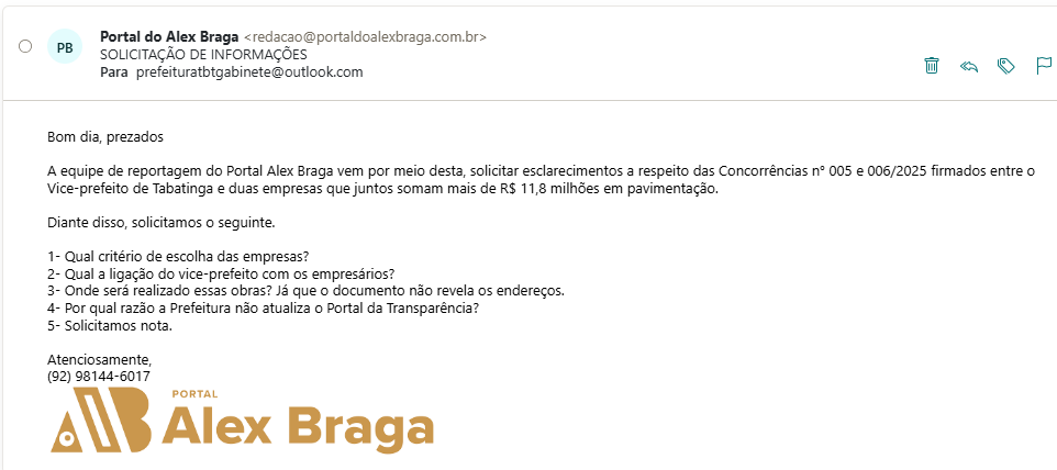 O Núcleo Investigativo do Portal Alex Braga (PAB), buscou por mais informações sobre esses contratos no Portal da Transparência de Tabatinga, porém somente um resulto de pavimentação foi encontrado, do ano de 2023.