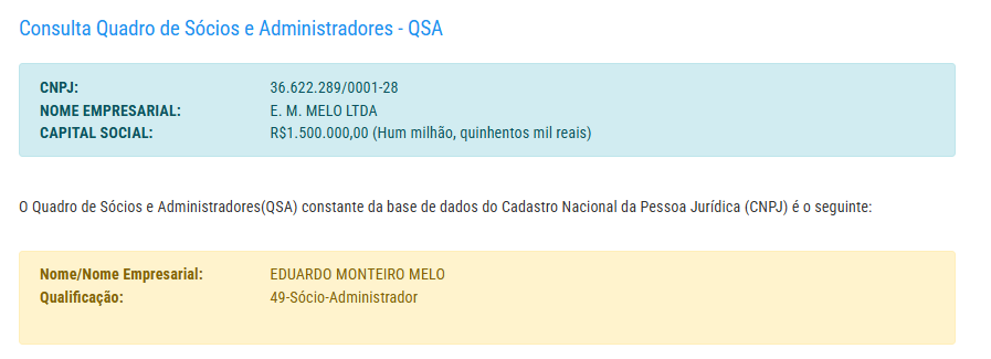 A empresa possui capital social de R$ 1,5 milhão e pertence a Eduardo Monteiro Melo.