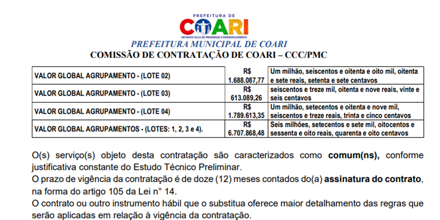 Enquanto isso, a cidade afunda em denúncias. Recentemente, o Portal Alex Braga revelou que a Prefeitura de Coari pretende gastar mais de R$ 6 milhões em serviços de manutenção e instalação de ar-condicionado, um valor considerado elevadíssimo e injustificável diante das necessidades reais da população. A licitação, dividida em quatro lotes e assinada pelo mesmo presidente da Comissão de Contratação envolvido em decisões anteriores questionadas pelos órgãos de controle, levantou suspeitas por seu alto custo e pelo histórico de problemas envolvendo transparência nas licitações do município.