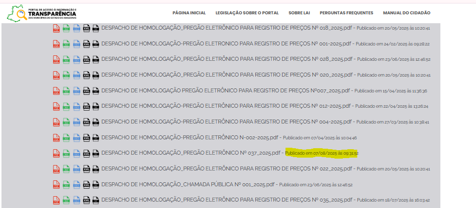 A aba contratos 2025 somente foi atualizada até agosto deste ano. Ou seja, três meses sem informações atualizadas do município.