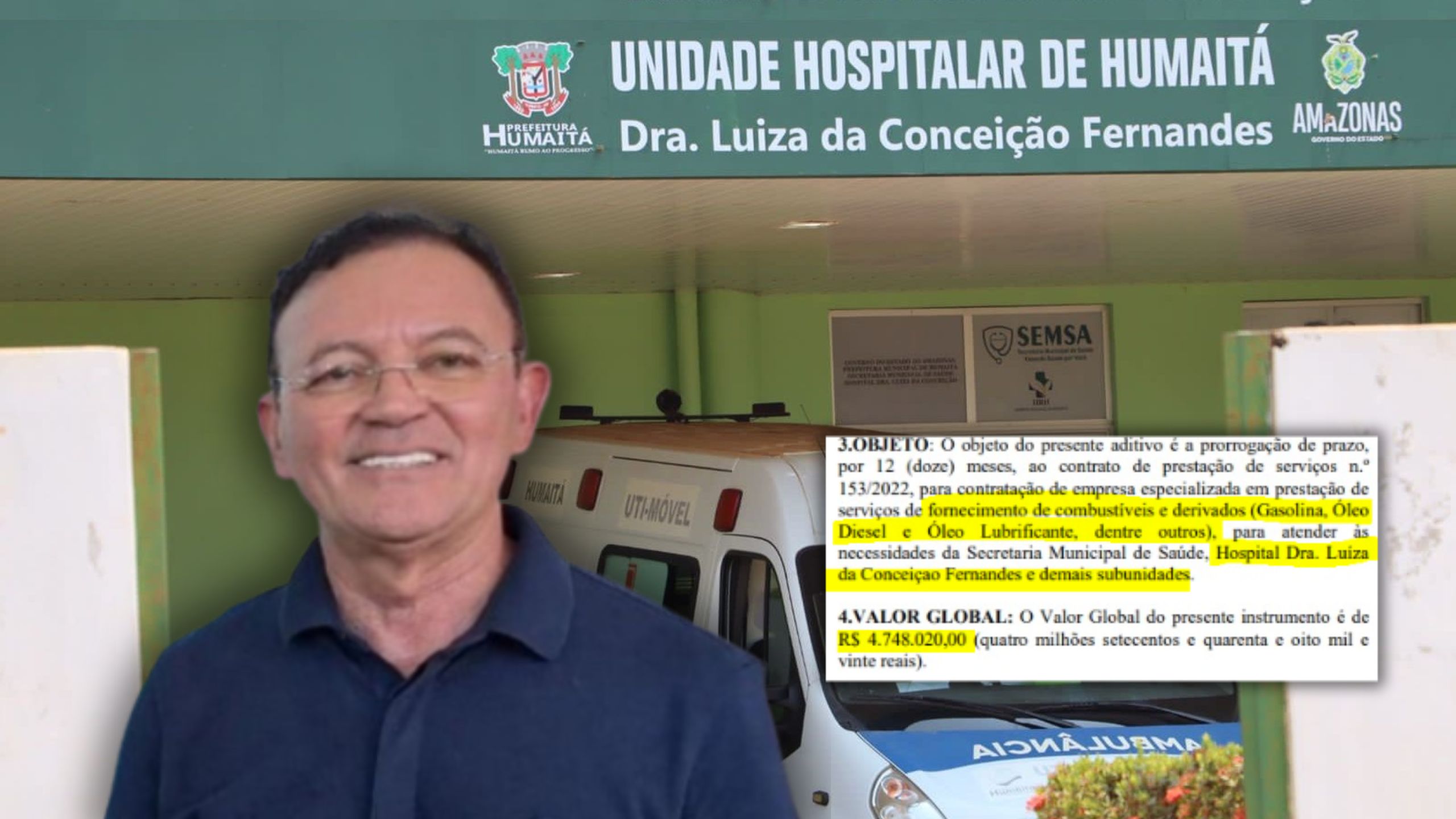 O prefeito de Humaitá, Dedei Lobo (União Brasil), assina o terceiro aditivo em contrato de mais de R$ 4,7 milhões para comprar combustíveis e derivados de uma empresa para atender um Hospital de Terapia Intensiva (UTI), localizada no município.