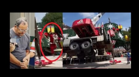 Nos vídeos registrados por testemunhas, mostram o momento em que o guindaste que foi contratado pela empresa CenArt Produções, para a instalação dos módulos da árvore tombou, a cena captada mostra o desespero dos trabalhadores.