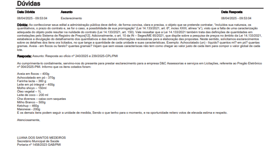 Mesmo com o esclarecimento, a necessidade de refazer informações básicas expôs fragilidades na elaboração do Termo de Referência, etapa fundamental para garantir transparência e isonomia nos processos públicos.