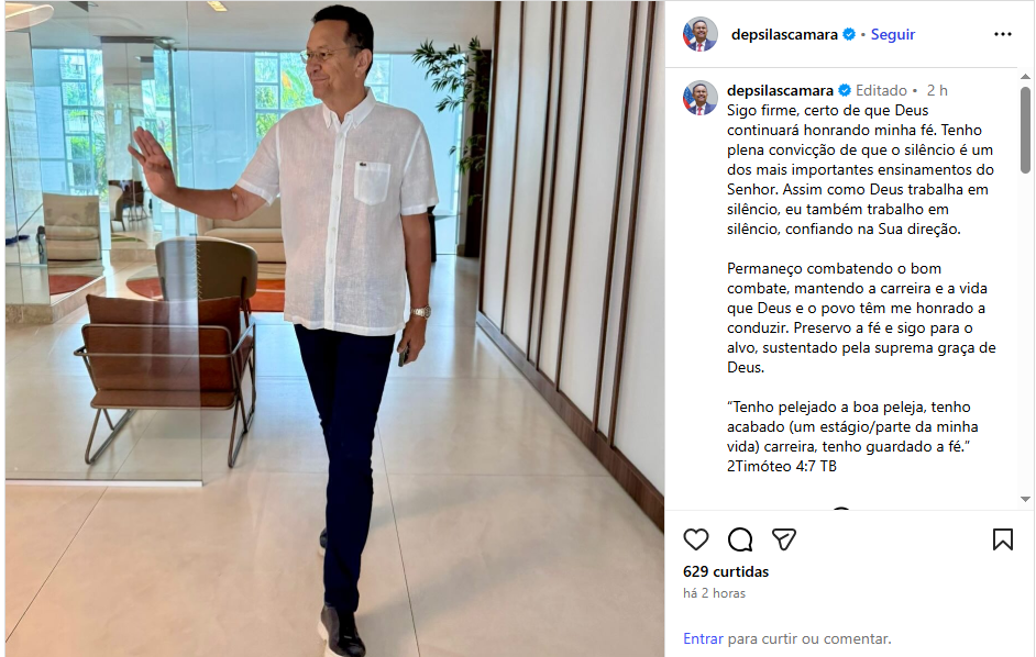 Silas Câmara, deputado federal pelo Republicanos e pastor da Assembleia de Deus, segue tentando manter a rotina após ser acusado de traição pela esposa, a também deputada federal Antonia Lúcia (Republicanos-AC). Em um vídeo publicado recentemente, ele compartilhou detalhes de sua rotina e reafirmou sua confiança em Deus.