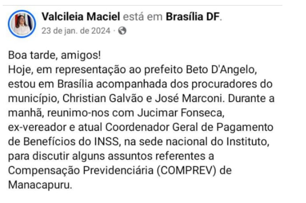 Amizade que abriu as portas de Brasília para Valciléia tratar sobre Previdência com o ex-vereador preso. Aliás, ela mesma fez questão de mostrar proximidade com Jucimar.