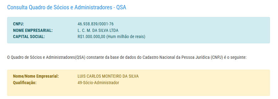 A empresa possui capital social de R$ 1 milhão e pertence a Luís Carlos Monteiro da Silva.