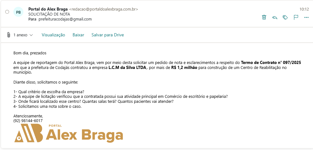 A equipe de reportagem do Portal Alex Braga (PAB), entrou em contato com a prefeitura de Codajás questionando essa contratação milionária e o critério de escolha da empresa de papelaria. Até a publicação da reportagem nenhum retorno nos foi dado. O espaço continua aberto.