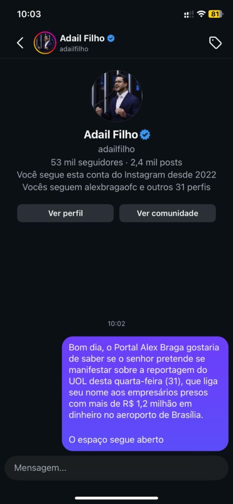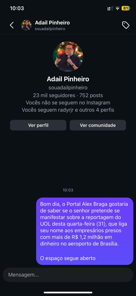 LEIA AQUI : Adail Pinheiro assinou contrato milionário com empresário preso com R$ 1,2 milhão no DF