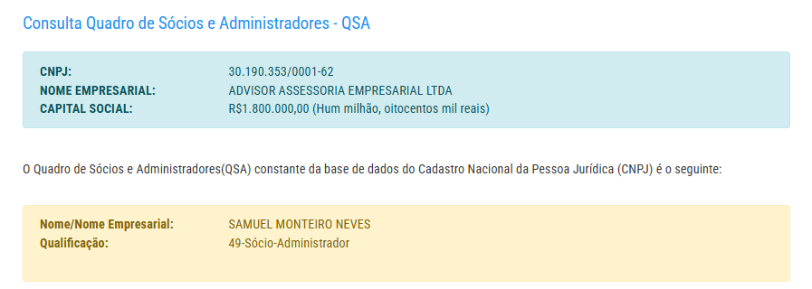 A empresa possui capital social de R$ 1,8 milhão e pertence a Samuel Monteiro Neves.