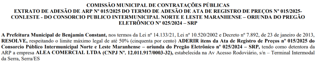 Mesmo assim, o eventual contrato milionário dos materiais escolares, gera dúvidas sobre a necessidade da realização de uma adesão ao Registro de Preço do Consórcio Público Intermunicipal Norte e Leste Maranhense.