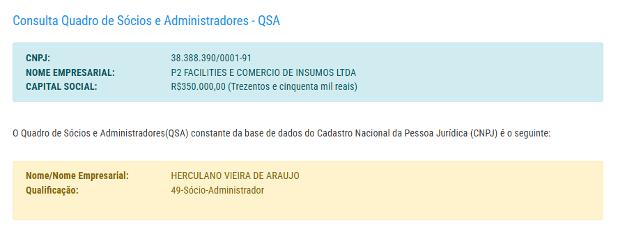 A empresa possui capital social de R$ 350 mil e pertence a Herculano Vieira de Araújo.