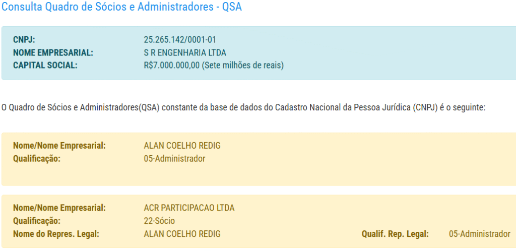 Segundo as informações cadastrais da empresa, ela está localizada na cidade de Manaus, com um capital social de R$ 7 milhões. Registrada no nome do empresário identificado como Alan Coelho Redig, e ainda tem como sócio da empresa ACR Participação, também representada pelo mesmo empresário.