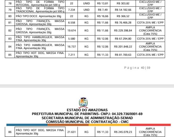 Em aquisição, que inclui ainda outros diversos itens comestíveis, sendo perecíveis e não-perecíveis. Resultando o eventual gasto de mais de R$ 10 milhões no café da manhã da Secretaria de Administração de Parintins, sem apresentar detalhes sobre a necessidade dos objetos requisitados.