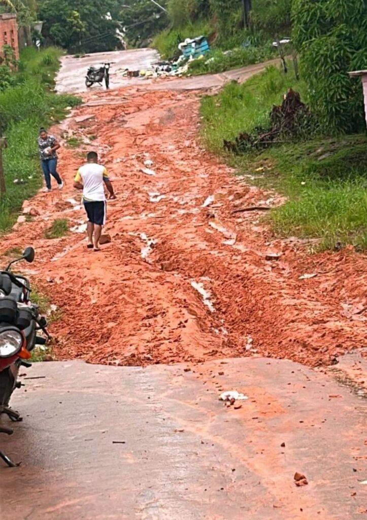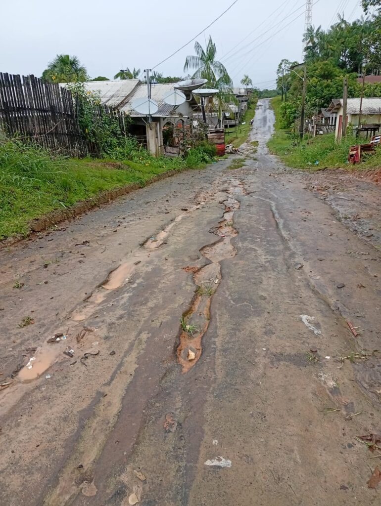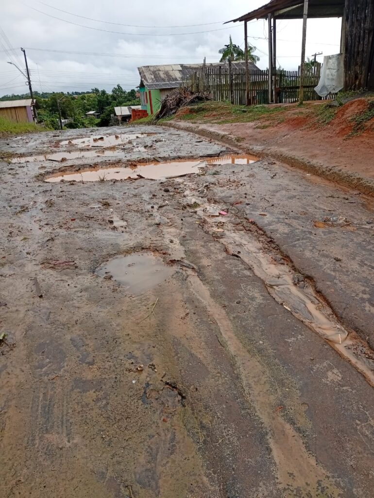 “Olha a situação da rua que vai pro morro, onde eu moro. A gente vive caindo. Quem vem a pé também cai. Isso é uma vergonha para a Prefeitura de Ipixuna. Agora mesmo eu caí com a minha esposa.”