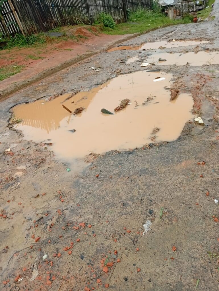 Imagens e vídeos enviados por moradores ao Portal Alex Braga mostram a dura realidade enfrentada diariamente pela população. A rua Gonçalo Mourão Veras é um dos exemplos mais críticos, o local está completamente esburacado, coberto por lama e vegetação, tornando o tráfego perigoso e, em alguns pontos, praticamente impossível.