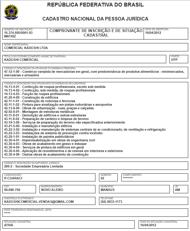 Veja o registro da empresa: