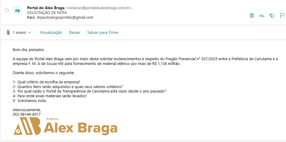 O Núcleo de Reportagem Investigativa do Portal Alex Braga entrou em contato com a prefeitura de Canutama questionando essa contratação e falta de informações no Portal da Transparência. Até o fechamento da reportagem, nenhum retorno nos foi dado. O espaço continua aberto.