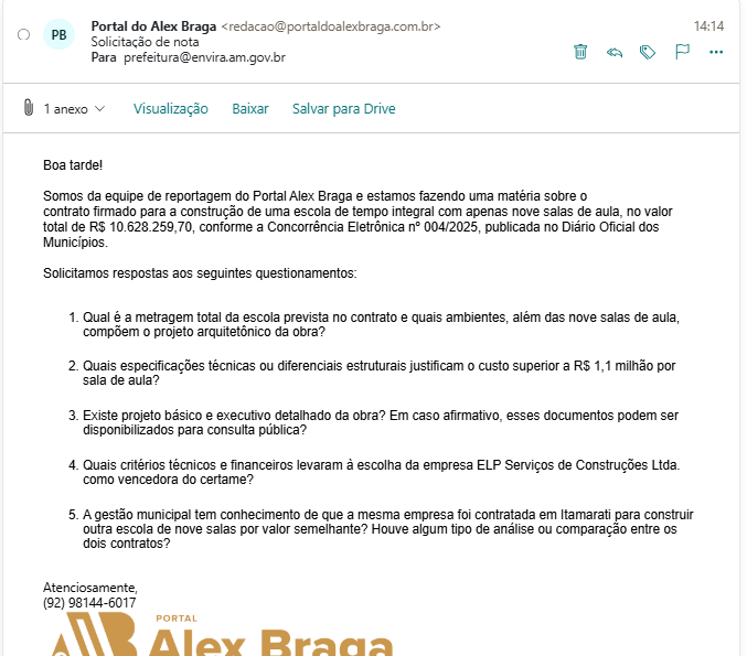 O Núcleo de Reportagem Investigativa do Portal Alex Braga entrou em contato com a prefeitura de Envira para falar sobre o caso, mas até a publicação desta matéria não obtivemos respostas. O espaço segue aberto para esclarecimentos.