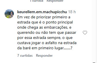 “Em vez de priorizar primeiro a estrada que é o ponto principal onde chega as embarcações, e querendo ou não tem que passar por essa estrada sempre, o que custava jogar o asfalto na estrada da Baré em primeiro lugar.?”, questionou uma internauta.