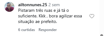 “Pistaram três ruas e já tá o suficiente. Bora agilizar essa situação prefeito”, disse outro.