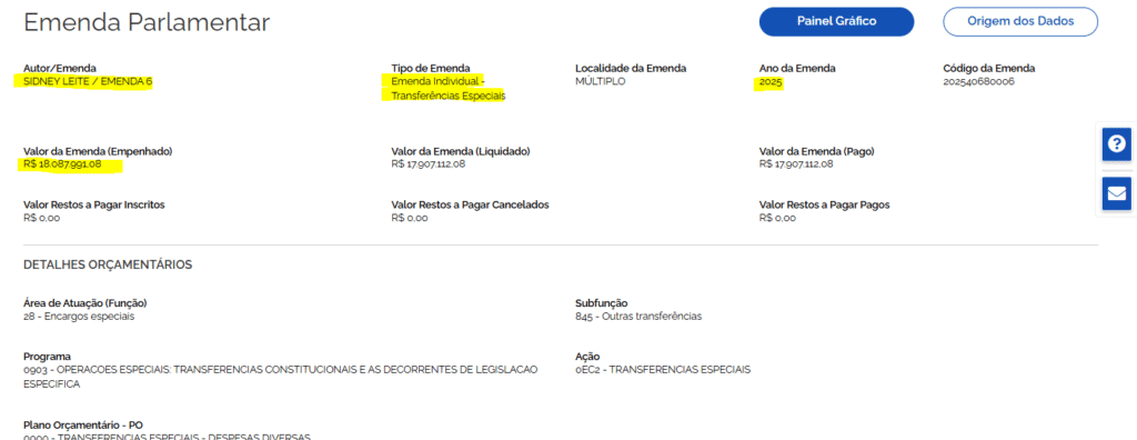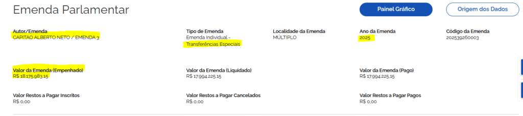 De acordo com os dados disponíveis no site, Alberto Neto já direcionou R$ 18.175.983,15 por meio das chamadas transferências especiais. Até onde é possível verificar na Transparência, nenhum outro deputado federal do Amazonas supera esse montante em emendas Pix.