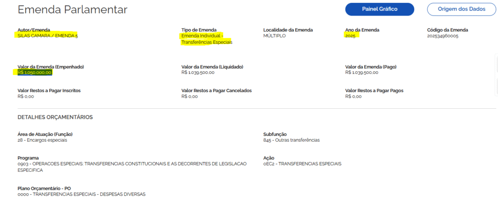 O pastor e deputado federal Silas Câmara realizou um repasse de R$ 1.050.000,00 em emendas Pix. Maior parte desse repasse foi para o município de Tonantins que é do prefeito Sales (Republicanos).