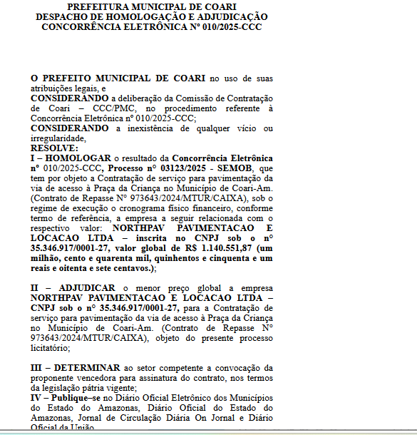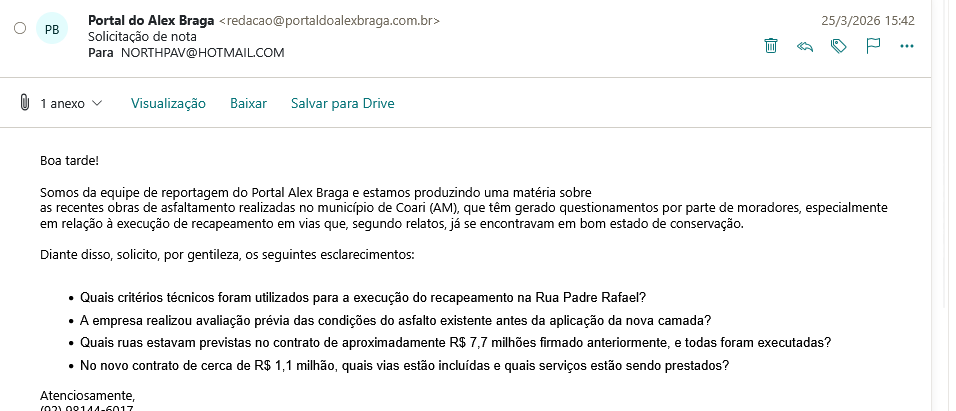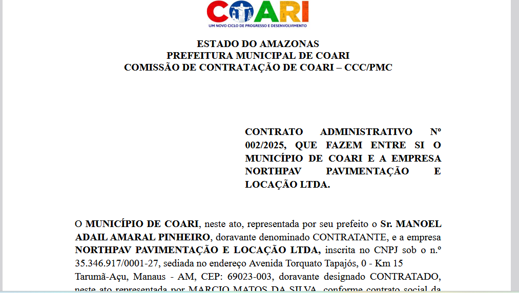 Os números oficiais revelam que o gasto com asfaltamento em Coari tem sido elevado. No ano passado, a Prefeitura contratou a empresa NorthPav Pavimentação e Locação LTDA para recapeamento e pavimentação de várias vias com valor de cerca de R$ 7,7 milhões. A obra, segundo moradores, não cobriu todas as ruas prometidas, e muitas ainda permanecem sem asfalto.