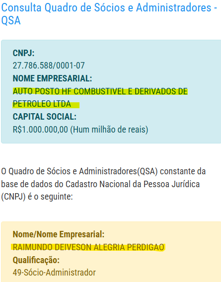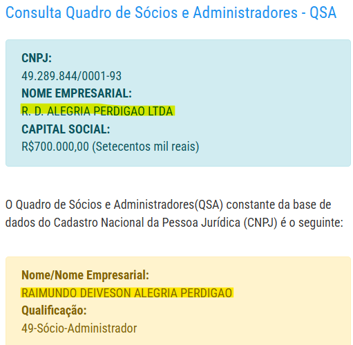 Além disso, o empresário Raimundo Deiveson Alegria Perdigão, tem outros CNPJs, com a prestação de outros serviços. As empresas estão registradas da seguinte forma:
