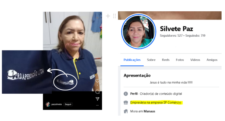 Ocorre que a empresa está no nome da mãe, mas na rede social, Raimundo se apresenta como dono e a mãe, como funcionária, inclusive uniformizada.