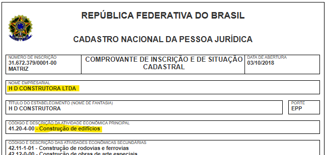 Confira nas informações cadastrais da empresa:
