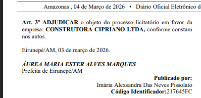 Mesmo diante da situação, a gestão da prefeita Áurea Marques autorizou a execução de quatro contratos de obras que somam R$ 10.598.534,80, conforme publicação oficial.
