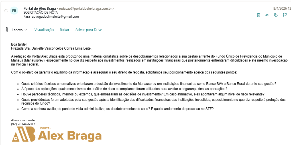 No período em que esteve à frente da Manausprev, a advogada Danielle Leite autorizou e participou da gestão de aplicações que somaram cerca de mais de R$ 33 milhões.