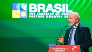 Em um discurso, o presidente Luiz Inácio Lula da Silva (PT), no estande brasileiro na Feira Industrial de Hannover, nesta segunda-feira (20), declarou a vontade de transformar o Brasil em uma potência mundial com a economia rica.